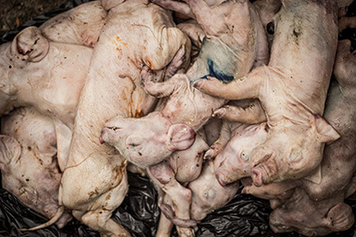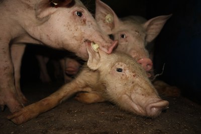 Arme Schweine! Schweine sind uns Menschen in vielen Aspekten ähnlich. Sie sind neugierig und empathisch, lieben Musik, träumen und können sogar Videospiele spielen. Obwohl wir das wissen, werden sie in der industriellen Tierhaltung auf unvorstellbar grausame Arten gequält. Mutterschweine werden in Kastenständen gehalten, wo sie sich nicht einmal um die eigene Achse drehen können. Und dies gleich für mehrere Wochen! Wenn sie künstlicht besamt werden (Bild 1), und wenn sie Ferkel bekommen (Bild 2). Ferkeln werden die Schwänze und Hoden abgeschnitten (Bild 3). Auch die Eckzähne dürfen herausgebrochen werden. Sie werden in winzigen Zwingern gehalten, alleine oder eingezwängt zwischen Artgenossen (Bild 4). Kannibalismus ist oft die Folge (Bild 5). Schweinen wird in Tierversuchen die Haut verbrannt und sie werden als Ersatzteillager für Organtransplantationen des Menschen gezüchtet und danach getötet (Bild 6). Die Betäubung mit CO2 vor der Schlachtung soll betäuben, doch oft leiden die Tiere lange Qual, denn CO2 brennt massiv in der Lunge. Sie schreien minutenlang in den Gaskammern (Bild 7). Tierschützer wie SOKO Tierschutz decken regelmäßig tierquälerische Praktiken auf (Bild 8).